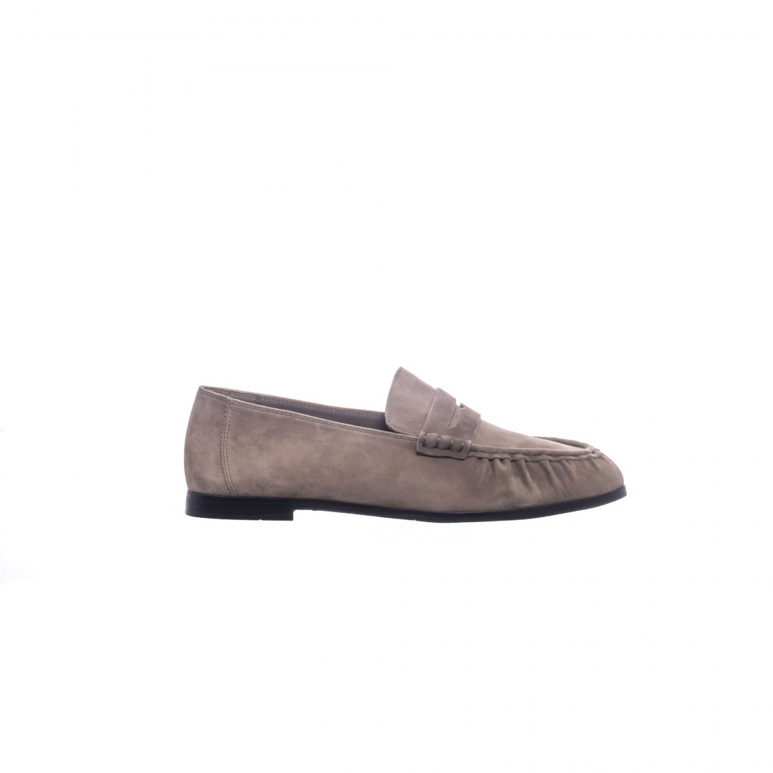 Mocasín básico en piel color taupe, de líneas limpias y elegancia discreta. Un esencial versátil y cómodo que se adapta con facilidad a looks diarios, aportando estilo atemporal y natural.