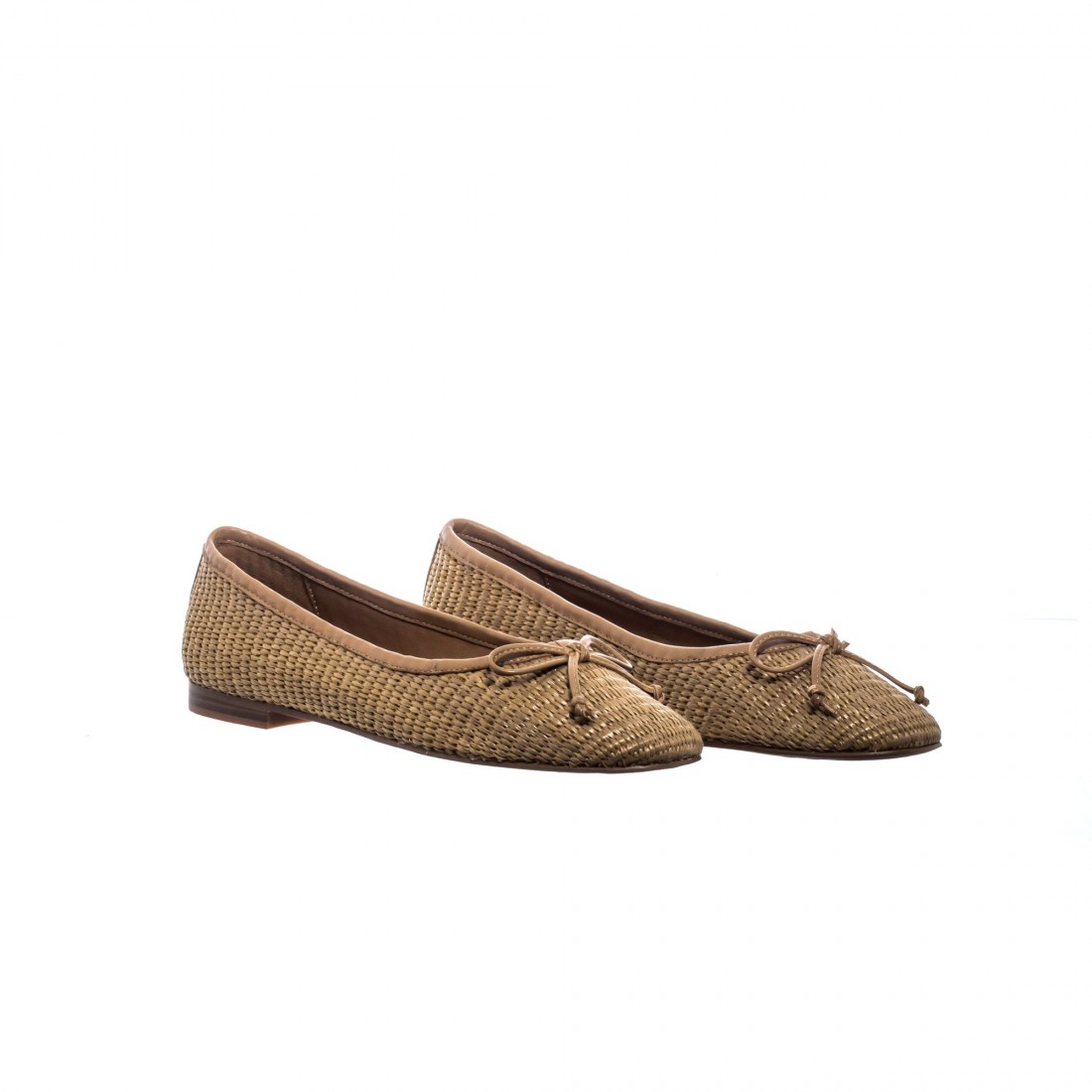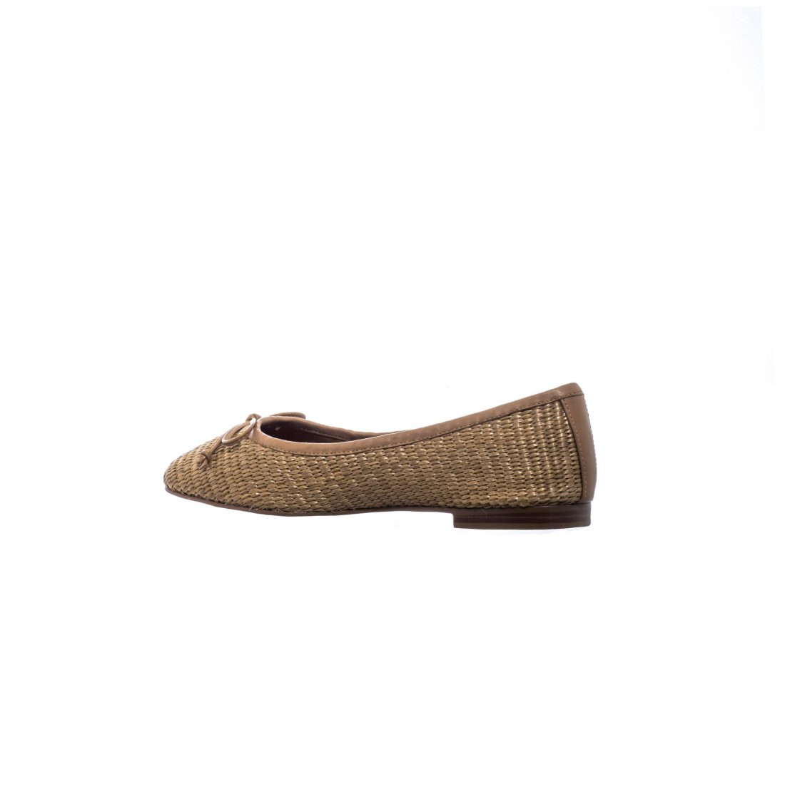 Bailarina de rafia trenzada en tono tostado con ribete y lazo en piel a juego. Su silueta fina y femenina envuelve el pie con ligereza y naturalidad. Forro suave y piso flexible que aportan confort en cada paso. Una pieza cálida y atemporal que respira esencia mediterránea.