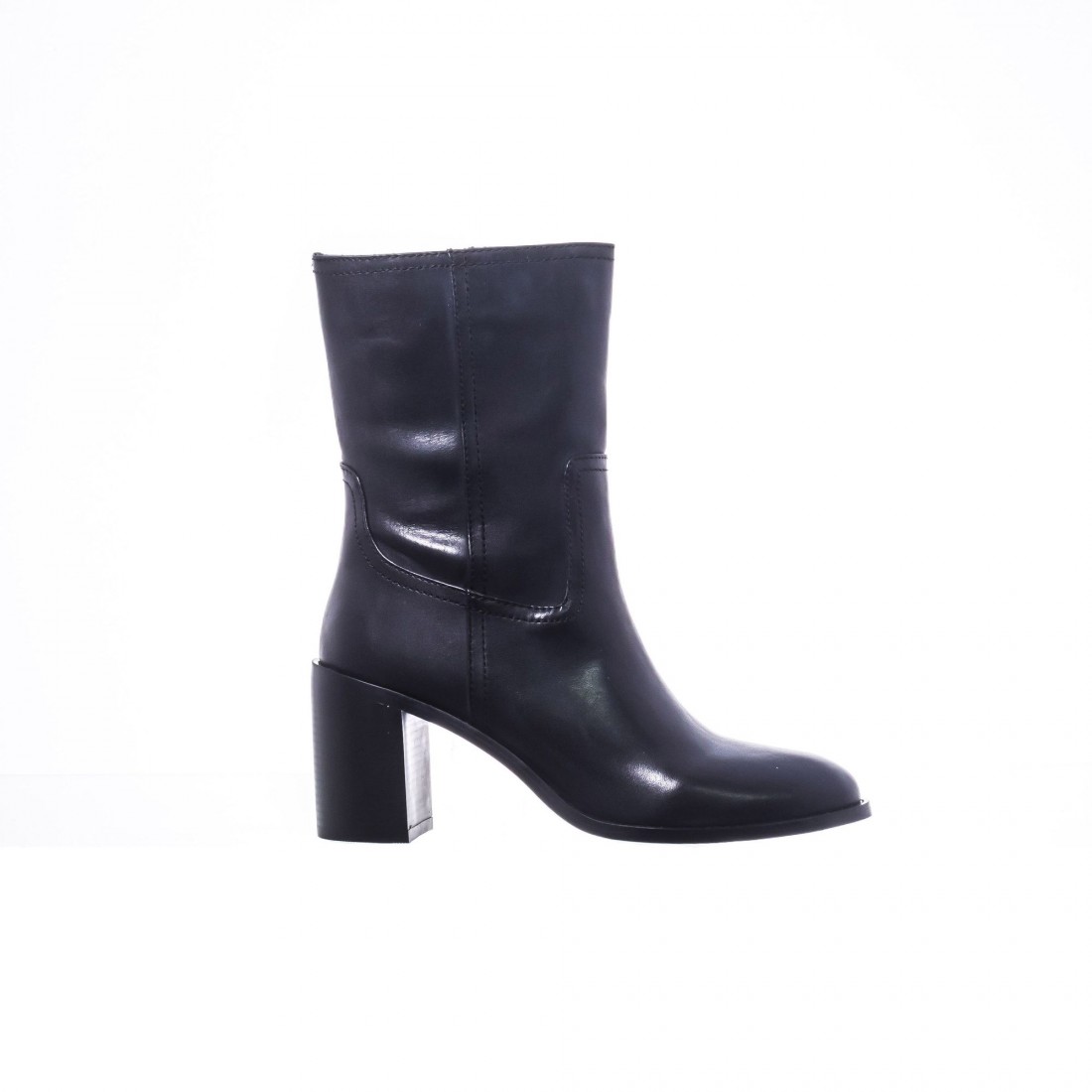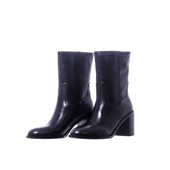 Botín en piel negra con tacón de 7 cm. Atemporal y versátil, combina elegancia y carácter en un diseño impecable.