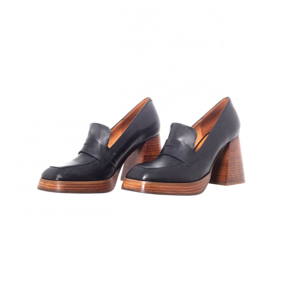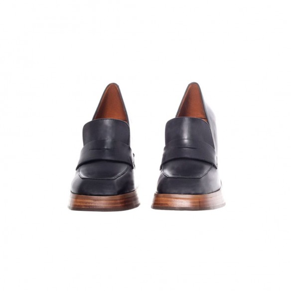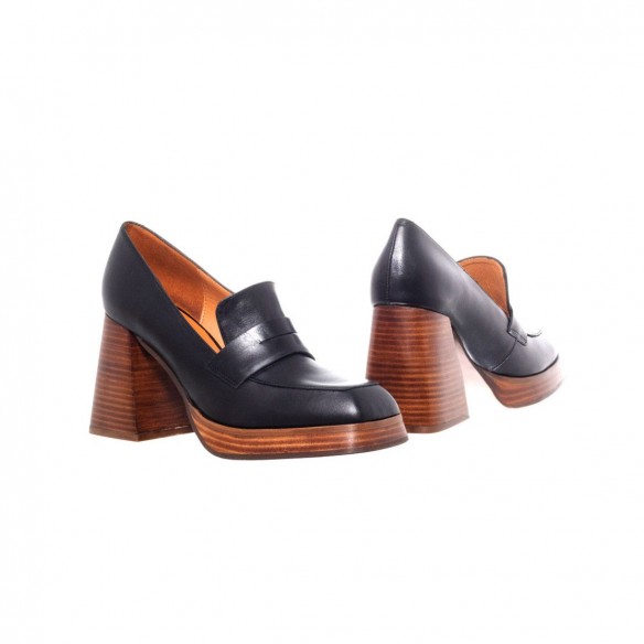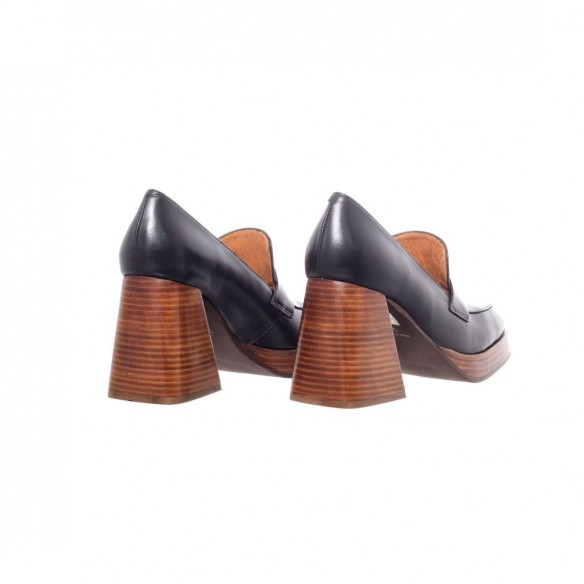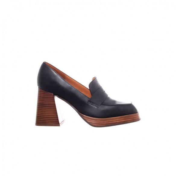 Mocasín de Piel color negro con plataforma y tacón forrado en suela