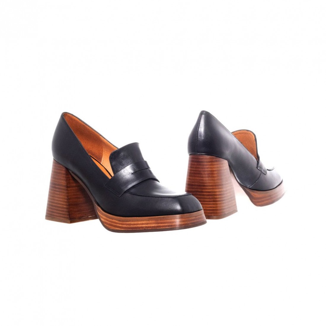 Mocasín de Piel color negro con plataforma y tacón forrado en suela