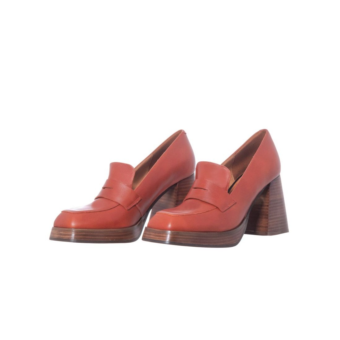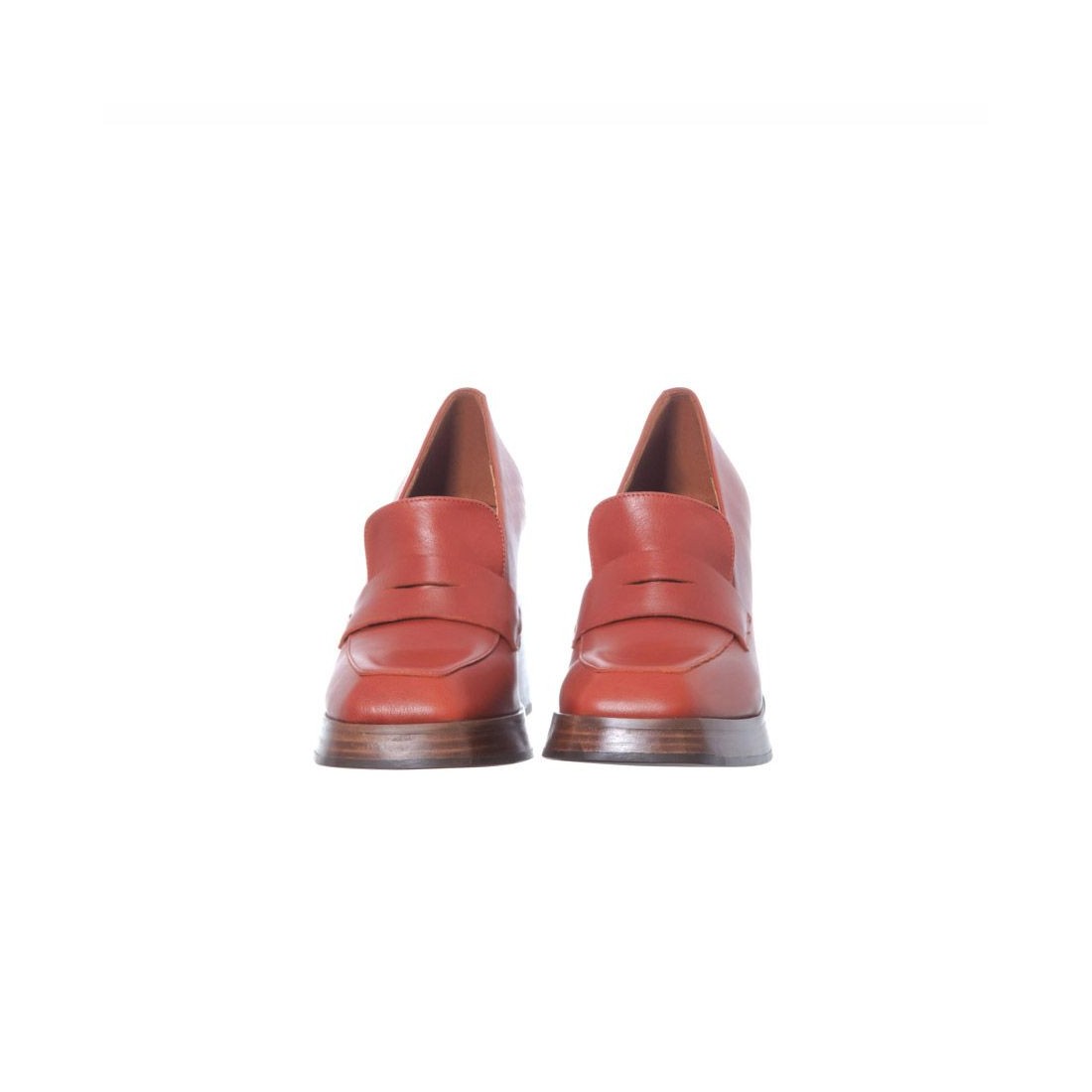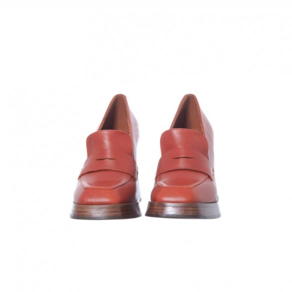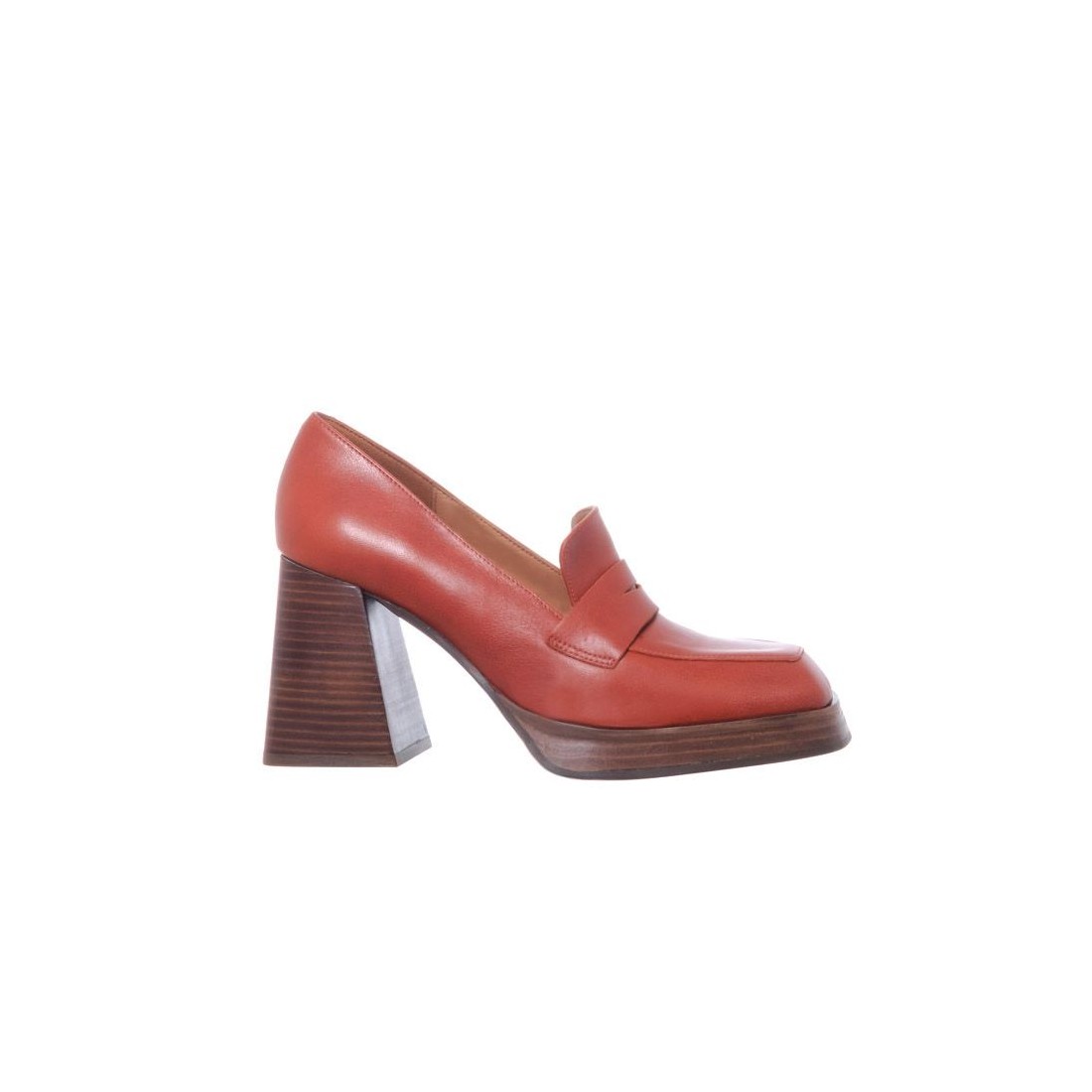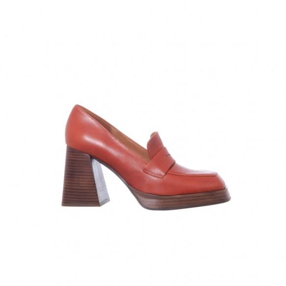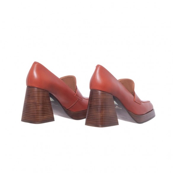 Mocasín de Piel color Teja con plataforma y tacón forrado en suela