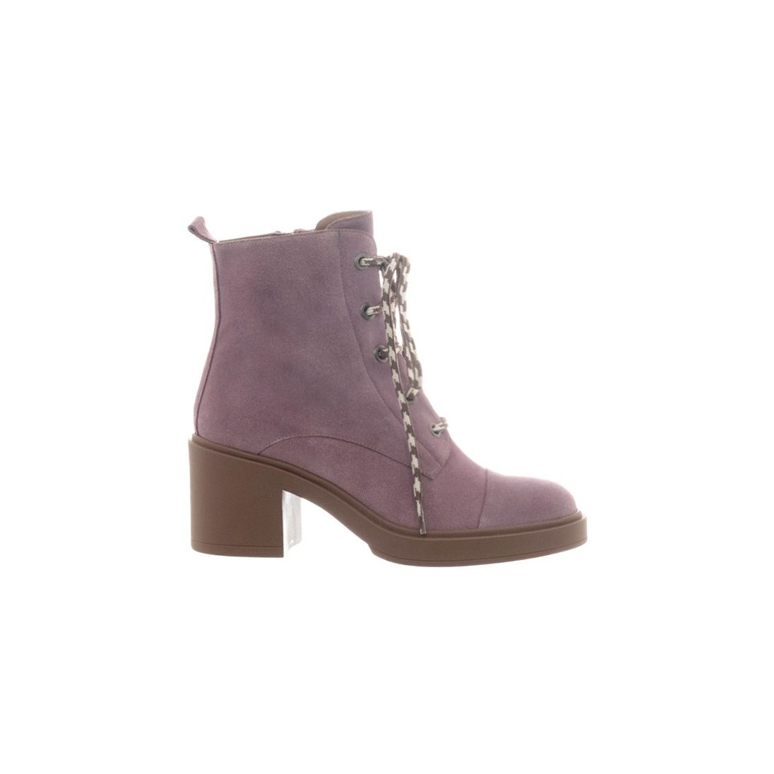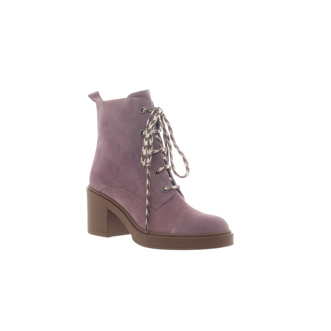 Botín de cordones en punta redonda , piel de Serraje color Malva.