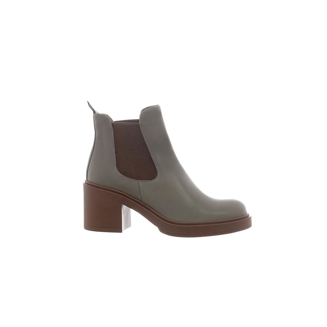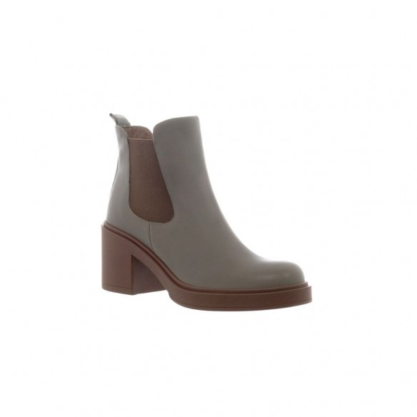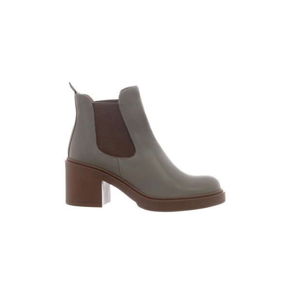 Botín de piel con elástico en punta redonda color Kaki.
