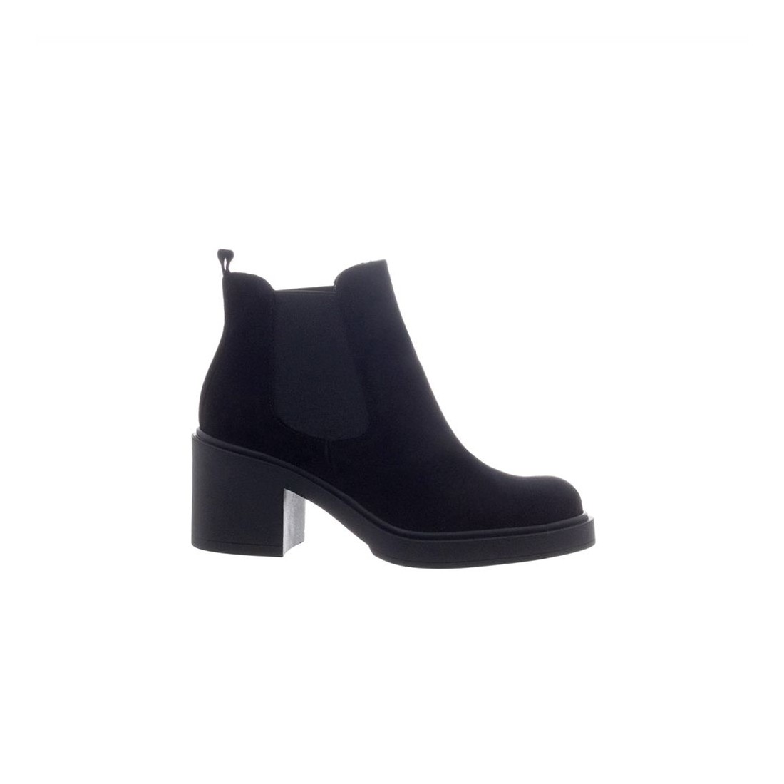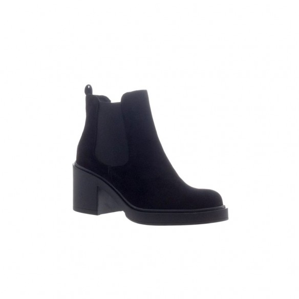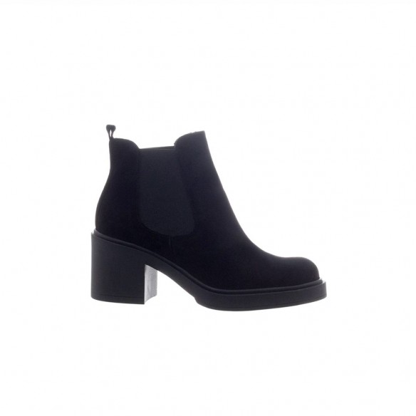 Botín de piel con elástico en punta redonda serraje negro