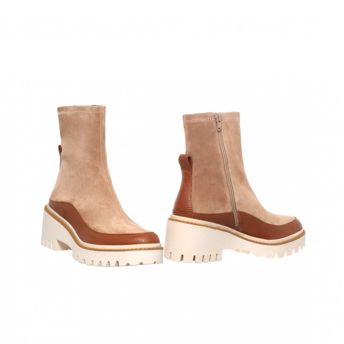 Botín de piel Color Cuero .Combina la piel con el serraje al tono