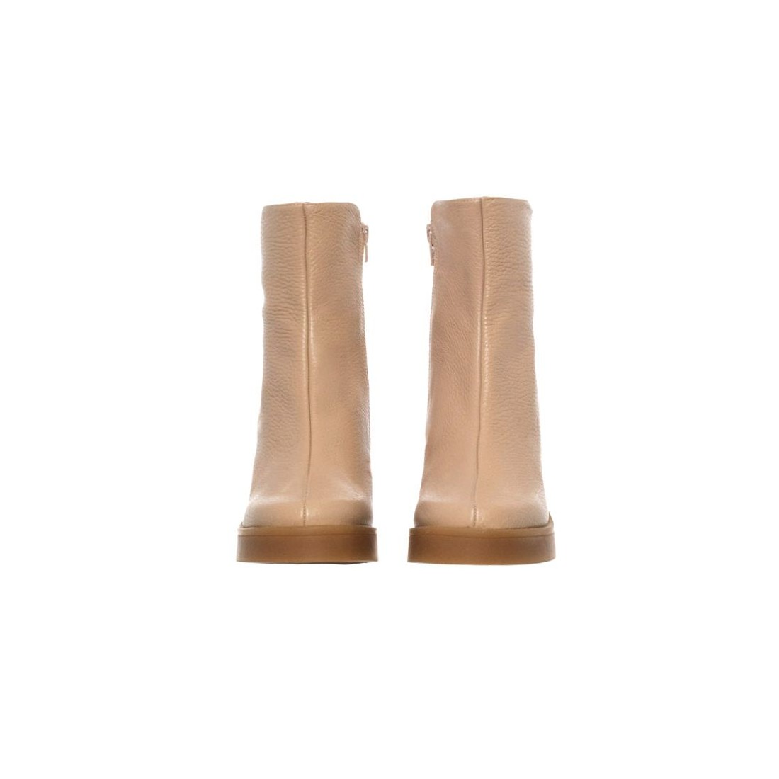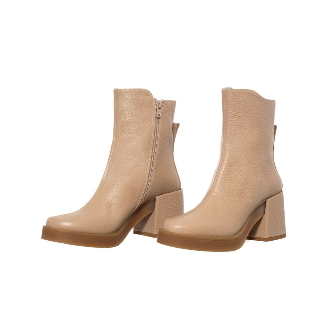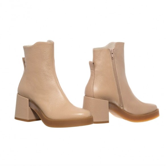 Suela en color cuero con un grosor de 2 cm y tacón ancho de 6 cm.
