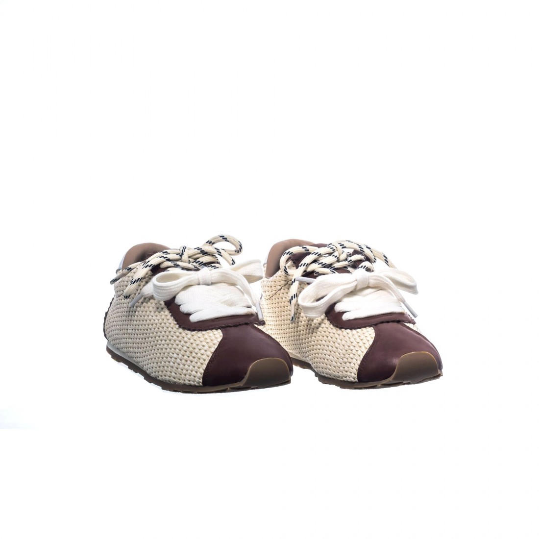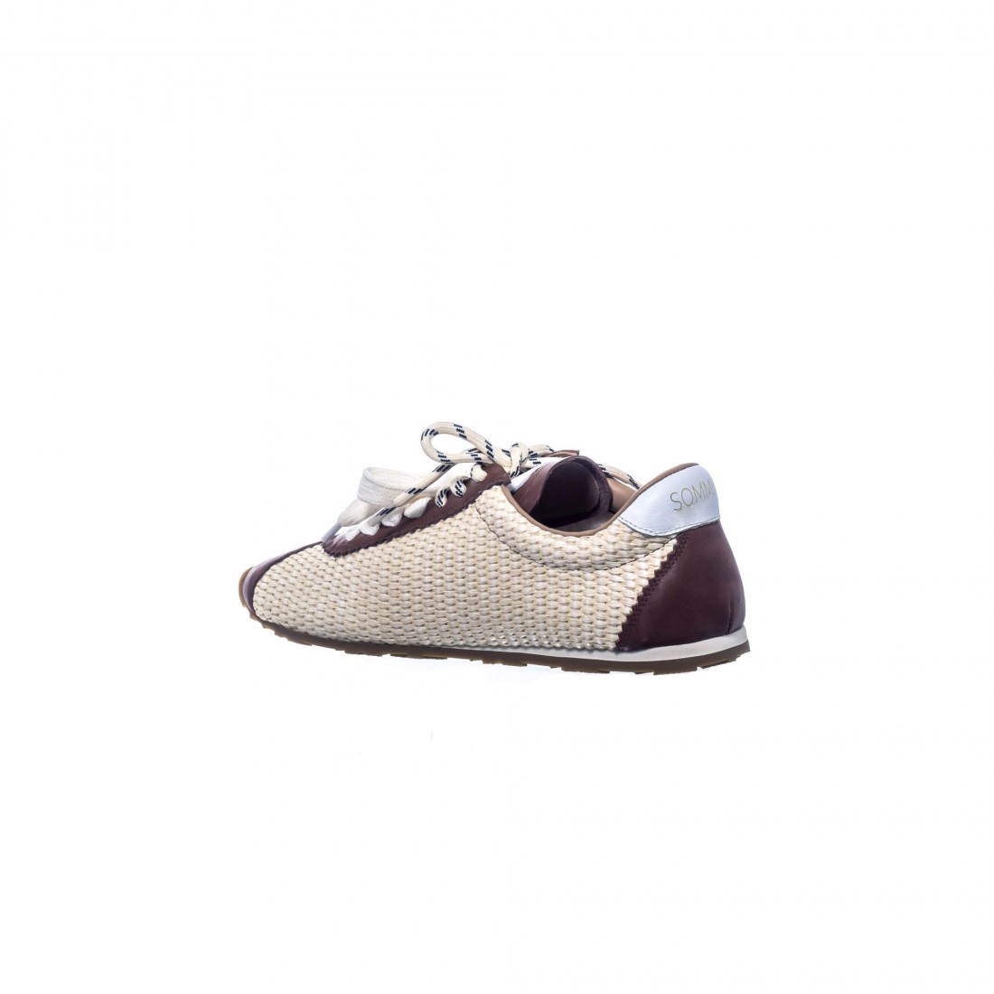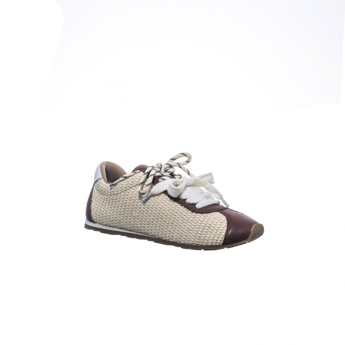Sneaker en rafia off white combinada con detalles en piel tono marrón y talón en contraste. Su textura artesanal aporta frescura y ligereza, mientras los cordones dobles añaden un toque contemporáneo. Flexible y cómoda, equilibra estilo relajado y carácter sofisticado. Una propuesta mediterránea con personalidad.