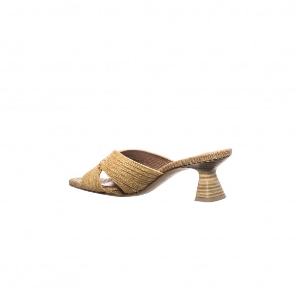 Sandalia en bordado de rafia color natural con diseño cruzado y tacón de 5,5 cm. Ligera, elegante y fácil de combinar, es la opción perfecta para looks de verano con un aire sofisticado y natural.